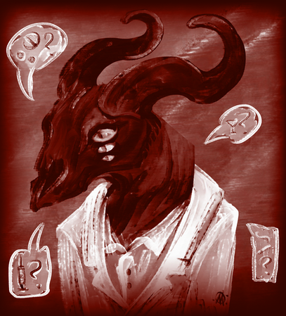 "The Key-bearer" as the explorers sometimes call him, dressed in leather either as a humanoid but flesh-less animal or as a fully cloaked figure, followed certain users around silently but occasionally chose to speak, either unintelligible lines that resembled suffocation, or hints about keys and places. Sometimes, he would let others follow him into eerie environments and parallel existences.A player from the game "Worlds" named Nexialist . I really like the urban legend about it being involved in a cult, especially the design. It's creepy. I like that.