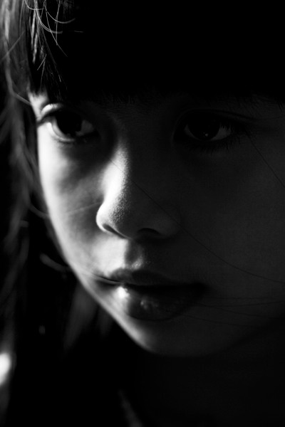 Mooie ogen! Heel mooie foto. Mooi contrast de bleke huid tegen de donker achtergrond en dan die donkere diepe ogen, die komen zo goed uit!