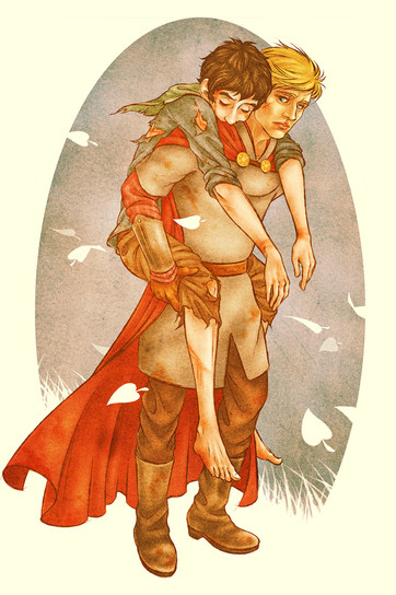 Arthur immediately regretted using a harsh tone when he saw Merlin try to bury his face into his arms. He threw an arm over Merlin's shoulders and pressed him close. They stayed like that for a while, without any protests from Merlin, both enjoying the other's presence.
