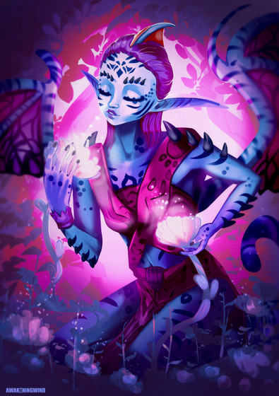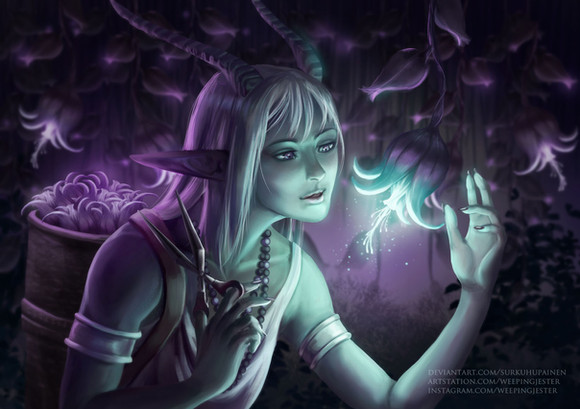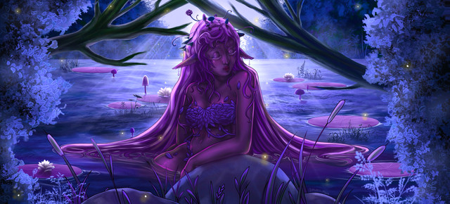 #bloom #digital #fantasy #flower #glitter #jester #magic #painting #princess #purple #semirealism #weeping #art