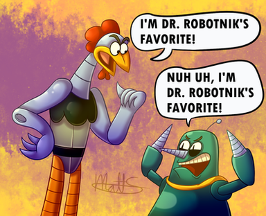 Yes! I love this idea so much! Look at Scratch takin' selfies with his brother. Look at his professional drawing of Dr. Rrrrobotnik on his wall. =d