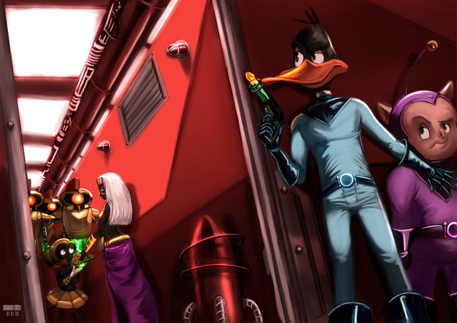 His jacket, and my inspiration for this picture goes to or not-a-comedian on Tumblr ^^ Her art and stories are just fantastic, check them out!I really wasn't planning on posting this, but my siblings were rather persistent in persuading me to do so. Duck Dodgers was my childhood show, I even remember watching a 4 hour marathon of it straight XD I always wondered what got him into the circumstances that made the show, as the intro was never that descriptive. Seemed sad, whatever it was. Cue this overly-dramatic piece, as I like to see my most favorite of characters suffer because I'm a psychopath or somethin'.