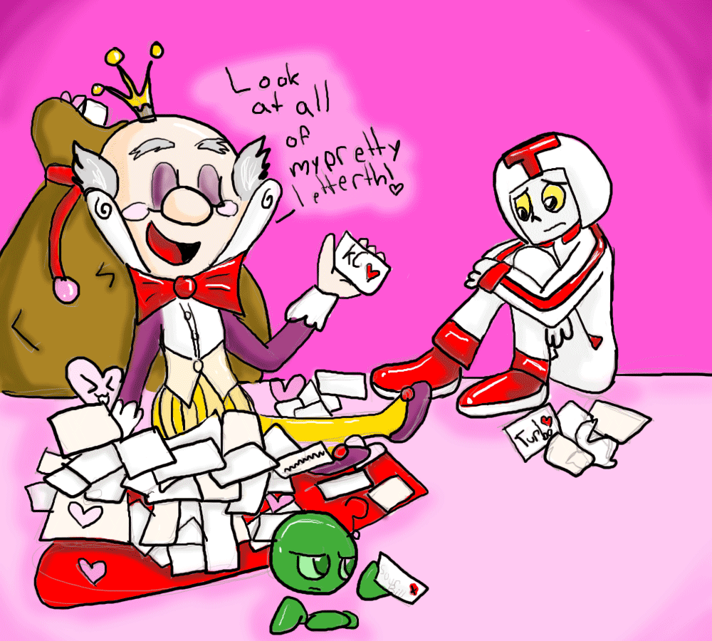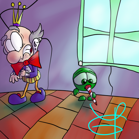 Poor King Candy he's sick. It's like he dosen't want to take his medicine.Β