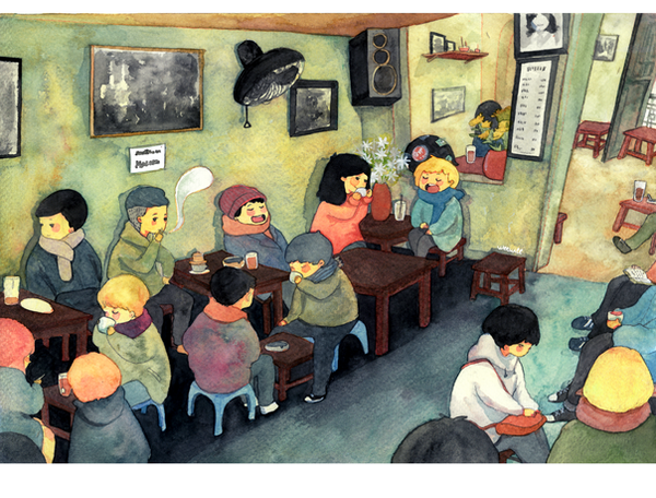 a coffee shop in Hanoi, Vietnam