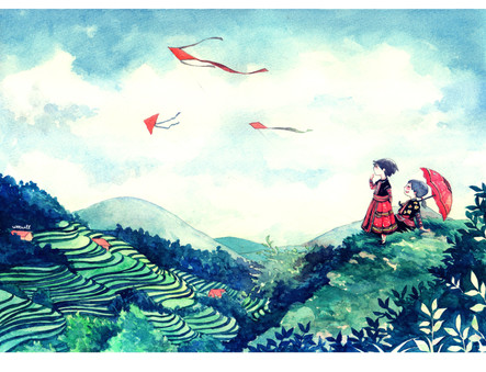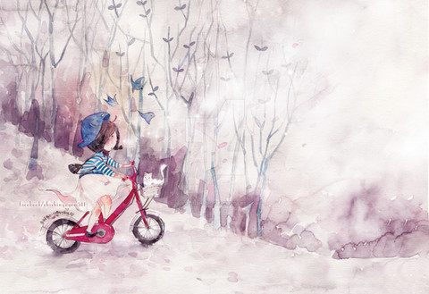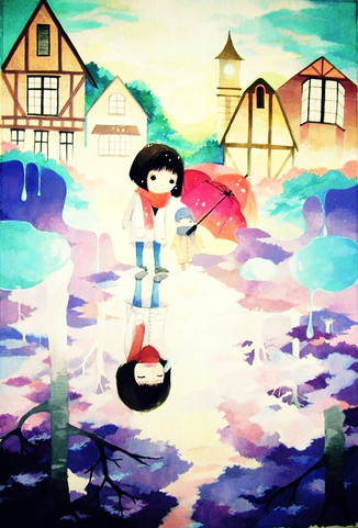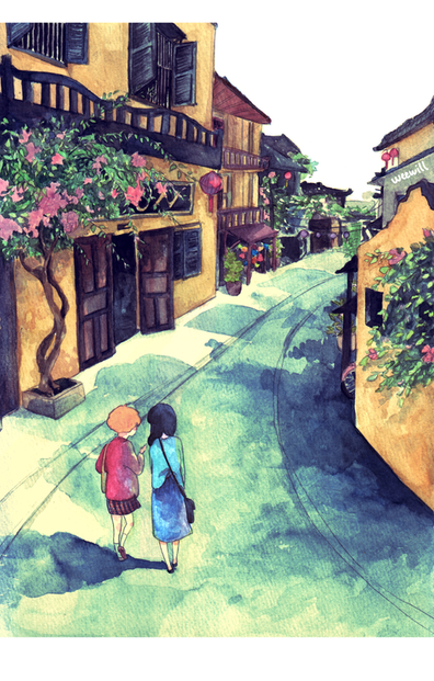 Anyways, your landscape really captured my attention, and the little girl gave a nice touch. Your watercolour style is really lovely.