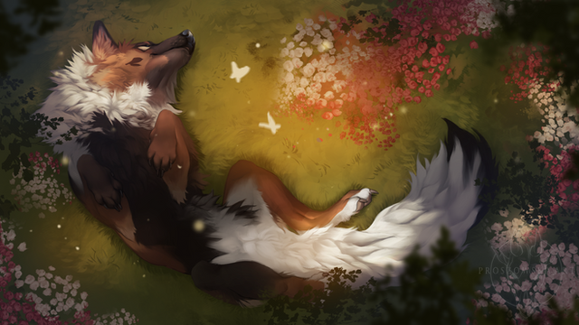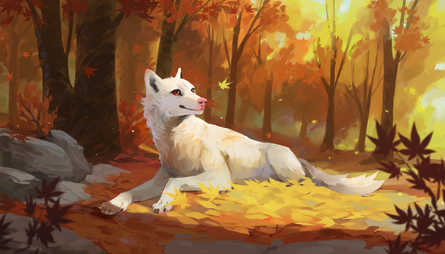 #autumn #canine #commission #digital #dog #drawing #fall #flowers #forest #fur #illustration #orange #painting #wolf #art #butterfly #fantasy #fantasyart #furryart #realart #wolfart #humanartist