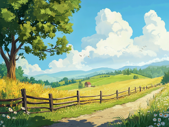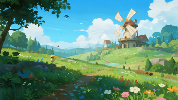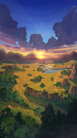 #digitalart #cartoon #wallpaper #conceptart #digitalpainting #2d #commission #fence #medieval #path #ricefields #stones #stylized #sunrise #tree #wallpapers #commissionsopen #wallpaper1920x1080 #art