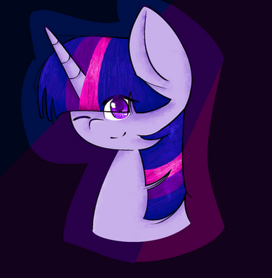 #raisedhoof #blushing #busty #cute #eyebrows #female #highres #pony #portrait #safe #simplebackground #smiling #smirk #solo #unicorn #twilightsparkle #looking_at_you