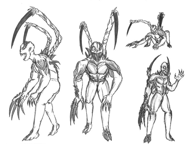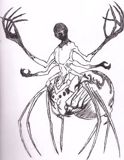 The Lilian (hybrid) form of an Ananasi (werespider) I played in a game of Werewolf: the Apocalypse.The hand to the far left is a tad craptastic, but I'm fairly content with the rest of it all.