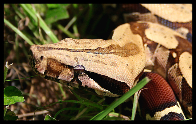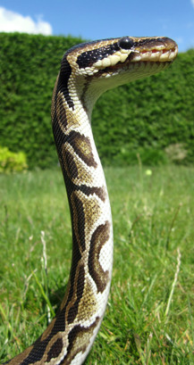 my ball python, Bijou, taking a morning slither through the grassshe's two years old, three feet long, and a total sweetheart