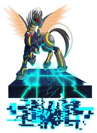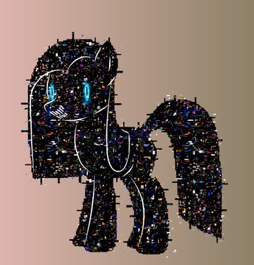 So, this was my half of an art trade type thing with and...I decided to try something differentconsidering the fact her pony is computer/machine based, I thought it was a good opportunity to try out a little effect.. which I now feel a little nervous about.