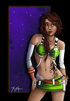 Magnifique design des vêtements de la fille, comme d'habitude Et j'aime beaucoup le background aussi