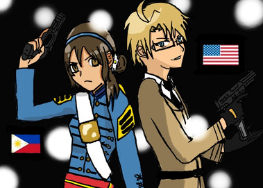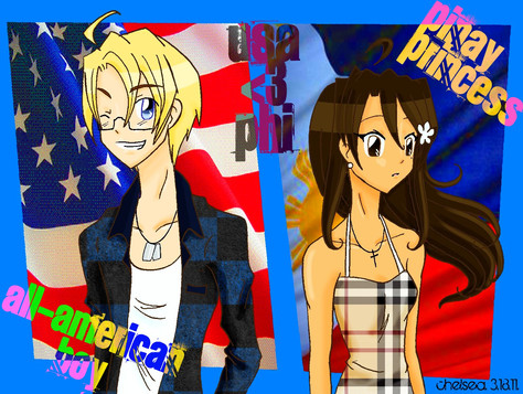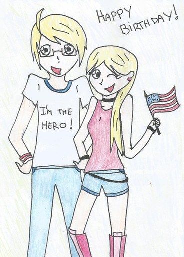 The first of a little series I wanted to doFelicity Merriman, from the American girl doll series with her country, Alfred Jones, from Hetalia.