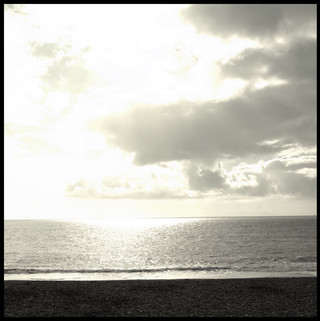 I like it!!One umbrella(?) black,one white - intersting.Great reflection at the sea!And the little lights at the right side.I think it is a good work