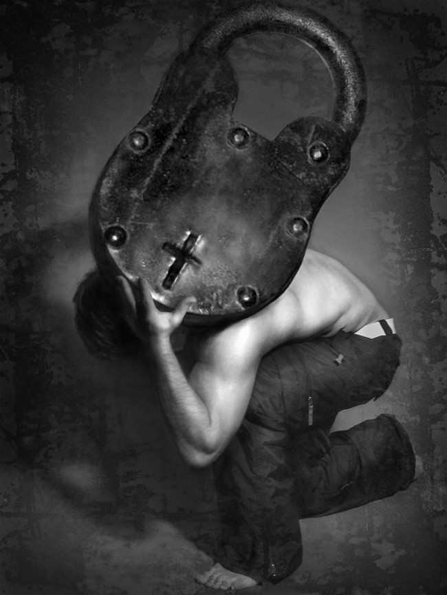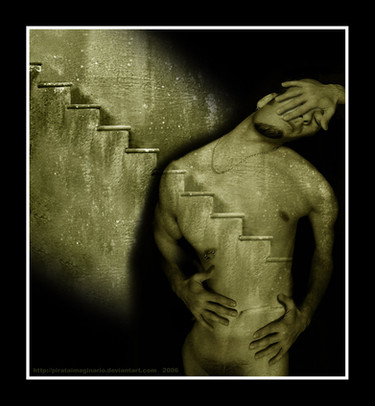 I like this picture for a few reasons. One being the complexities of the picture itself. The picture, to me, represents humanity. The part of humanity unwilling (or scared) to advance and evolve higher on the evolutionary latter, thus the naked man cowering in the courner. On a religious matter, maybe this man is being offered a way into heaven or to whatever diety he so desires, but he's scared, and what he thought all his life that he wanted to achieve is now dark to him. To the side of the picture is a light shining, maybe an alternative? I don't know, maybe I'm looking WAY too much into this picture.