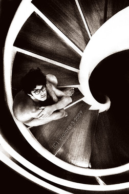 A fear of heights, a fear of bad luck by walking beneath it, a fear or falling, a fear of having no one to catch you, a fear of what waits for you at the top. So many possibilities expressed in such a tragic shot. Tragic in the emotion section, not in the quality department. I love the black and white colours and the way the ladders footing is darker towards him, making the ladder even less inviting.