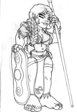 Took a few liberties with her design, as usual, but I'm pretty happy with how this one turned out. Got that Corinthian Helmet and Hoplon deal going on, as well as a Chiton (or it may be a Peplos, they're pretty much interchangeable from what I can work out) Also got the whole Classical toe thing, which is... a thing. Eh, enjoy, anyway! I'm very happy with it, hopefully someone else will be!