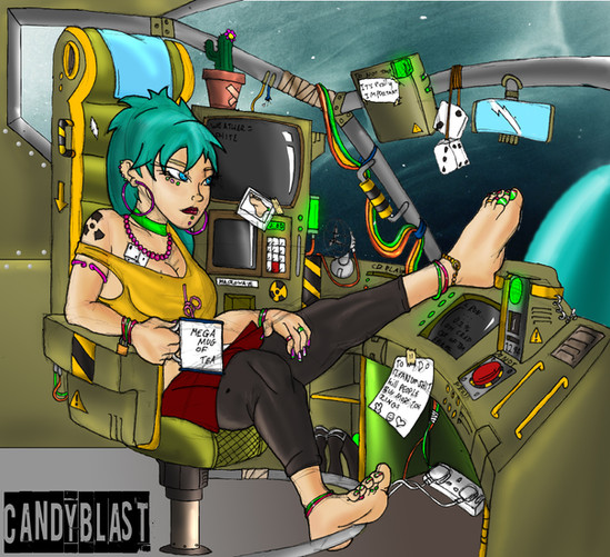 Someone posted somewhere that a good way to beat art-block or at least, art-apathy, is to listen to music. So, I did. The music of choice being 'Born Slippy' by Underworld. A pumped, crappy Ibiza anthem from the 1990s. As soon as I heard it, I KNEW it'd suit Candy to a Tee. So, this happened. Proof perhaps that music really is very good inspiration!