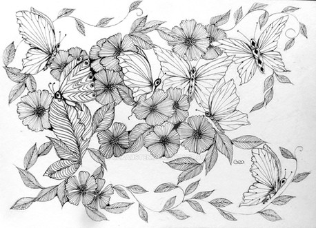 #butterfly #coloring #doodle #drawing #floral #flowers #garden #illustration #ink #krita #lineart #mushrooms #nature #adultcolouringbook