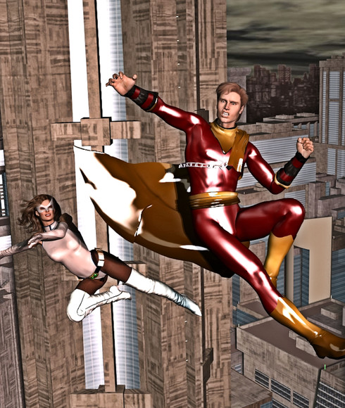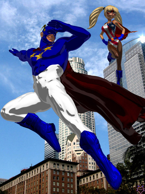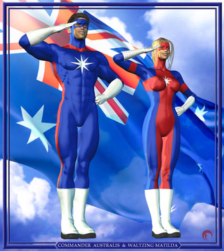 Featured here are my main Aussie COH toon, the energy-blasting Commander Australis. Beside him we see his power-punching sister, Waltzing Matilda (who belongs to the Masked Shrike).