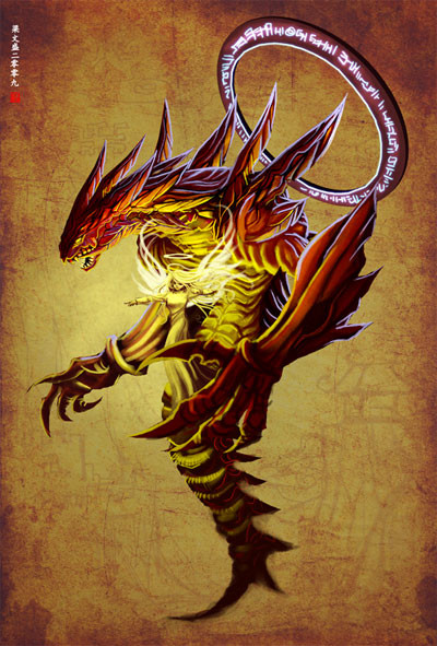 Is that ancient Chinese calligraphy in the upper-left hand corner? Cool monster. The lack of eyes kind of spooks me out.