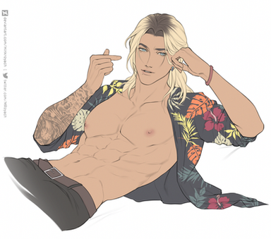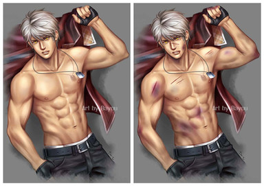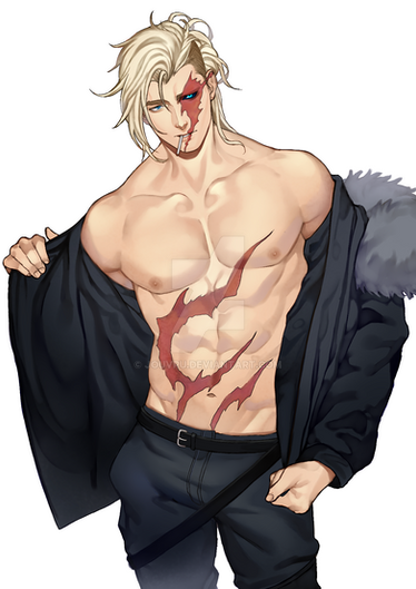 This turned out amazingly! I really admire how you draw bodies- Those muscles look really good! I really like how you drew his expression and injuries too! Thank you so much for making my character look so fantastic!!! It was super fun working with you!!!