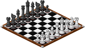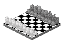 Nothing hidden here. Just a plain chess board with standard pieces (and some of them were very complicated for me to do...I just have to practice more in giving details to small sprites). They are based on a set I found there, so if they don't look like the ones you know, that's the reason. I used this piece to practice more on isometric view images, as well as coloring/shading techniques using a limited palette.