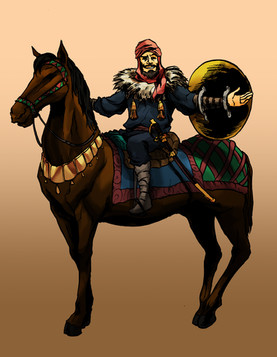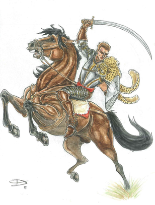This is neat! I love his expression and the way he's half-turned on the horse--makes me wonder what he's looking at.