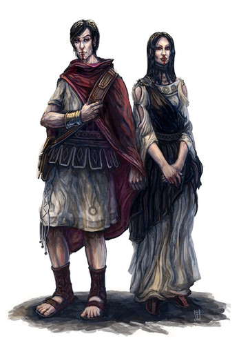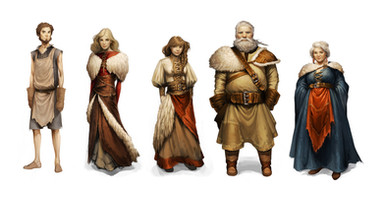 wow the drawing itself is awesome and the costume designs are beautiful the way they are rustic and earthy, love the little details and colours so you'll also sew this as a costume? amazing...