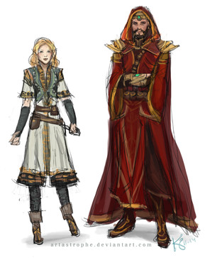 Fabulous designs! They're not exactly what is considered 'typical', but they seem more realistic for that. I'd love to see these outfits realised as actual costumes.
