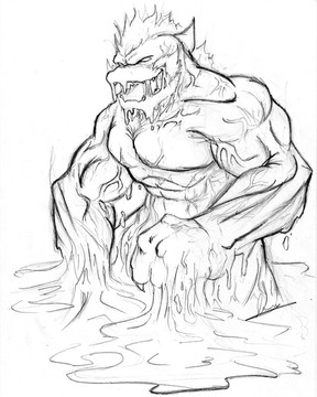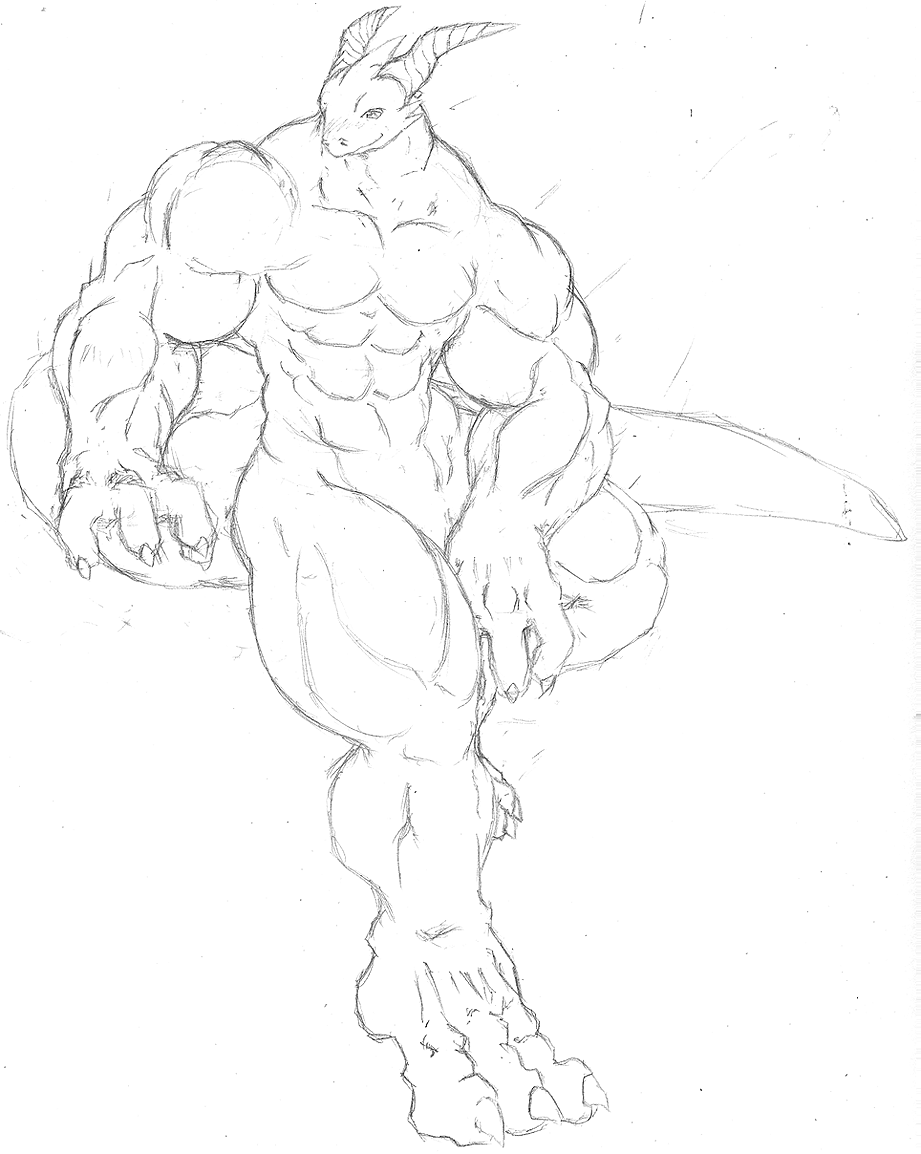 O_O I have 7 other deviations open at the smae time, and I just glanced at this (Nice sketch, btw) and for a second, I thought that his foot *pokes the foot at the bottom left of the pic* was somethings head, and I was like, >.> WHAT IS *THAT*?!?!