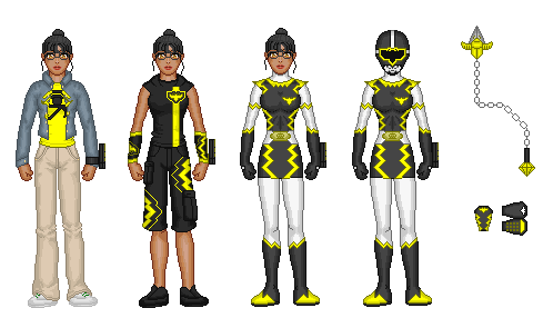 Edit: Added Weapon and Morpher. I'll be doing this for all the rangers. I tried making the morphers the closest to what they are in the hand drawn images, but I really don't think I could. And, I wanted them to always be the same on all forms of the ranger, but they looked too bulky on the normal form. So, I made it a silver bracelet with their symbol on it. When they touch the symbol the morpher shows. I still may change it, don't know yet.