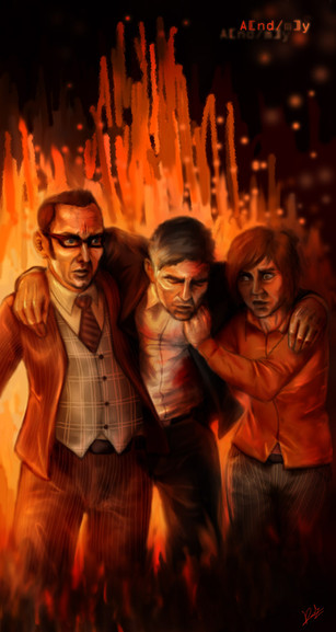 Done in one week. Pencil on paper, cleaned and colored w/ photoshop. References used (obviously...) It's supposed to be in one piece.