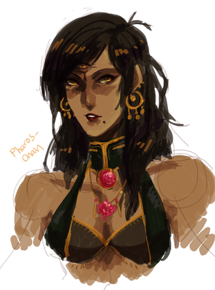 She was born in a family of changelings, who masqueraded themselves as a couple of nobles. She learned from a young age, how to hide their nature and play a role of a young lady. But when she was 14 years, deception was discovered and she was forced to flee. However, her skills were so impressive that she again find her place at the court of an influential gentleman, who put her talents to their advantage. She took the place of "Head of Espionage", taking not only the position, but also the appearance of former chief spy (she was already terminally ill). At one point, her master sent her to observe for a couple of "heroes", who staged a "show" in the port city Blackwall with the "dragonslaying", and other things. And this is where everything actually started...