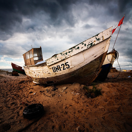 this was a windy and cold but still beautiful morning of May last year. Early dawn has painted that view quite well. I think this fishing boat had just enough after busy night.Unieście, Baltic sea, Poland 2011.