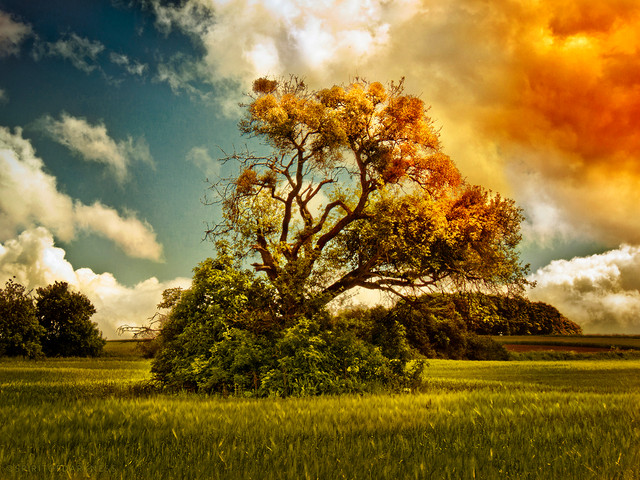 You made a wonderful contrast between the warm and cool color schemes. The work is unified with the warm-colored tree in the cool-colored sky. I'm very impressed. Keep making more.