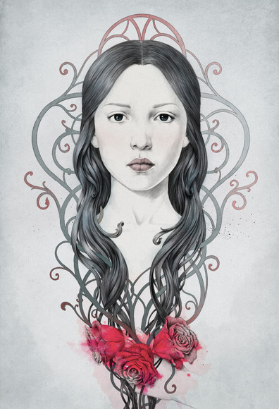 I love her hair and the drawings around her. Everything fits together perfectly. Your work is so refreshing.