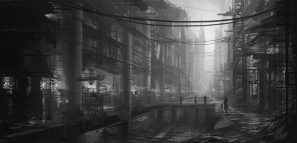 quick sketch of a raining town.for my rain recording bg [link]