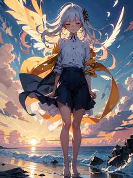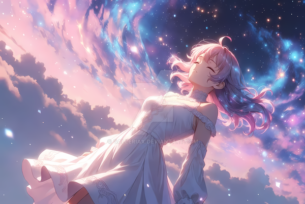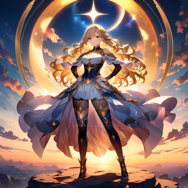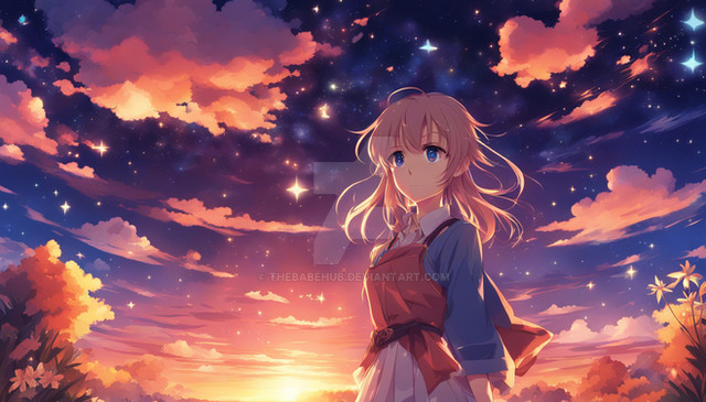 #adventure #anime #character #cliffside #colors #digital #dynamic #fantasy #flowing #hair #ocean #pose #stars #style #sunset #vibrant #view #art