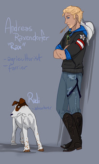 "Rax is a real cowboy. cept that he didnt grew up in the USA, hes ....close enough. Just switch the rocky mountains to the austrian alps and there you go. He tamed Haflingers instead of mustangs but hey they can be tough too! Hes quite the patriot but also has a big crush on western movies and would love to spend some years on a reeeal ranch or riding academy. Yeah he might be all the time a bit...rrawww and having a damn heavy farmer attitude knowing it all bettet than those snobs, but hes a kind and funny person. Especially when he's high on coffee. Oh and he LOVES coffee. He drinks that stuff 10 times a day, yet is aaaalll chill." - abosz007
