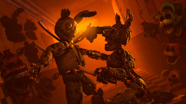 Circus Baby by Robgamings, Wiirexu & AbsentedTangentSpringtrap (from the AR game) by Mountroid, Scott Cawthon, Holopaxume & Thudner