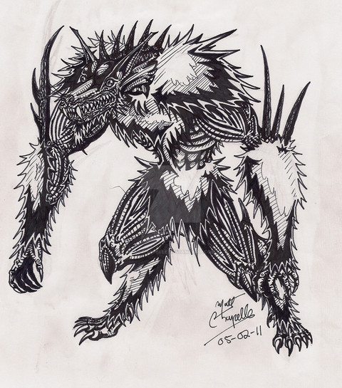 Whoa! Just creepy awsome! Looks like a xenomorph-type werewolf. I'd hate to run into this guy in an dark ally or have him running loose in some dark abandoned place. Great pen work too BTW.