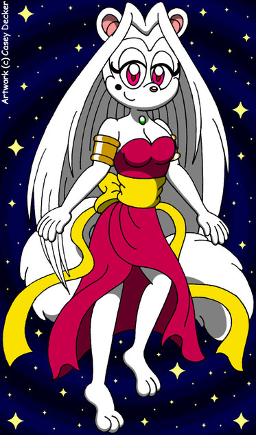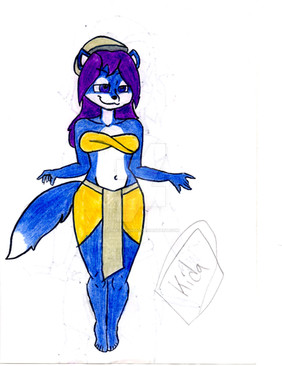 Le quería poner un fondo a la imagen, pero los fondos son mi punto débil. Nunca puedo hacer que se vean bien. O hago un buen retrato o hago un buen fondo, nunca puedo tenerlos los dos a menos que haga trampa. Otra cosa que se me dificulta mucho son las piernas... A meno que dibuje el cuerpo desnudo es muy difícil para mí ponerle pies a un atuendo. Debe estárseme pasando ya que esta vez me salieron al menos decentes, si se me permite decirlo. Y también ¡dibujar joyería es una monserga! tengo algunas nociones básicas, pero aun así no se veían suficientemente metálicos. Tengo que ponerme a ver tutoriales al respecto o pensar como mejorar por mi cuenta.