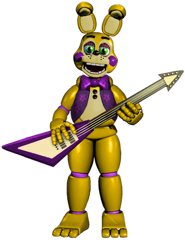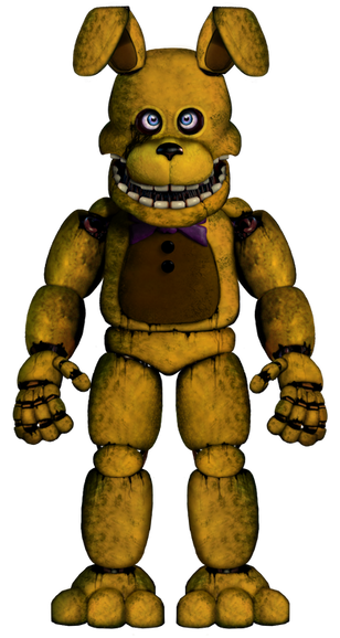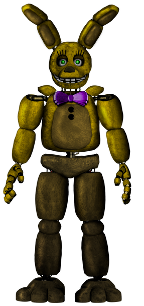 An edit of a more classic Spring Bonnie and my personal take on the character. I will probably do both a withered version and a Springtrap version of this later. Enjoy!Huge thanks to www.deviantart.com/weirdoss7 for the FNaF 2 resource pack.