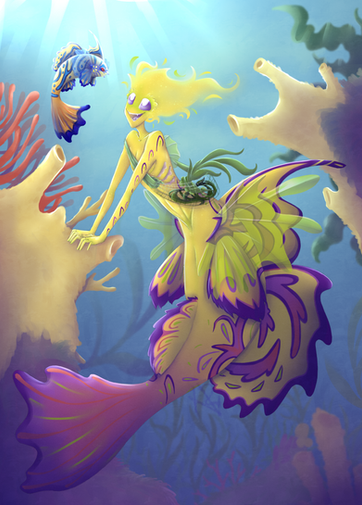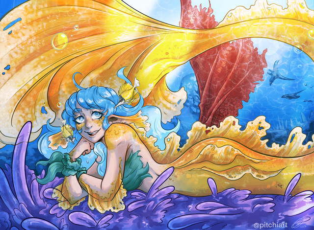 This is so cute and pretty!! Aaa I love it! You do water effects really nicely, especially with that hair! And the colors and freckles are spot on... love the little orange scales/freckles where the tail meets the skin!