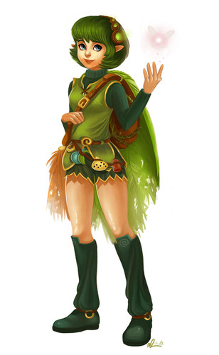 Very nice! I especially like the rendering of the belt. Just enough contrast to work. One thing that could be a bit more consistent is edge quality. Especially on the edges of her clothing, the edges flit between being sharp and crisp to being fuzzy. In addition, the blue underskirt that is peeking out around her thighs doesnt fall very well, if that makes sense. The shading makes it seem like it is being pulled taught to a point when you want it to be wrapping around her leg.
