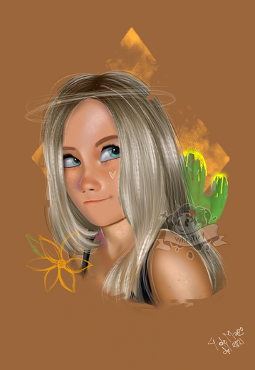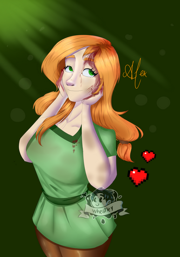A drawing of Alex from the Minecraft video game that would be the style that I will be using soon for a story of the same game