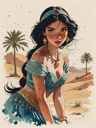 #digitalart #princess #fanart #portrait #beauty #jasmine #jasmineprincess #princessjasmine #washed #watercolorpainting #watercolors #jasminefanart #aigirl #aiart #princessjasminefanart #jasminedisney #jasminealaddin #jasmineprincessdisney #ai_art #aiillustration #synthography
