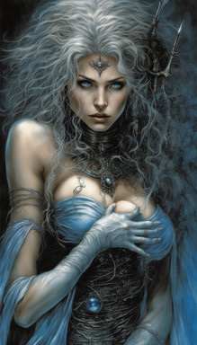 #atmospheric #beautiful #cleavage #corset #curvy #darkfantasy #detailed #digitalart #epic #fantasy #fantasycharacter #fantasygirl #forest #fur #glowingeyes #ice #longhair #magic #moody #mystical #night #seductive #snow #snowfall #sorceress #staff #voluptuous #whitehair #winter #witch