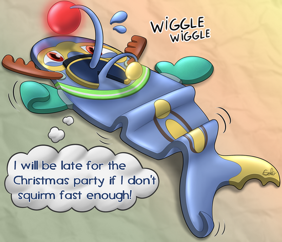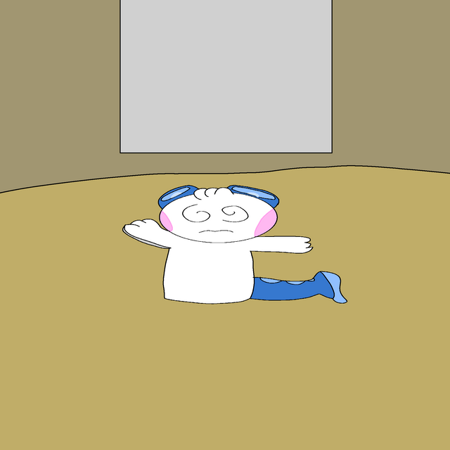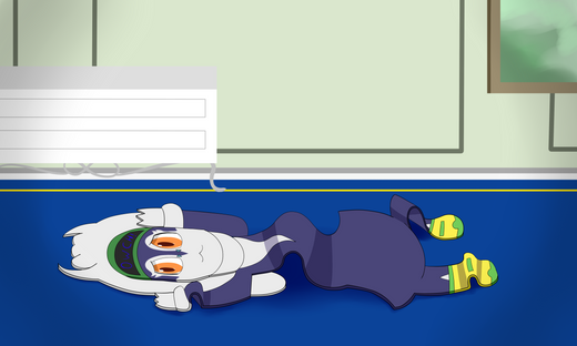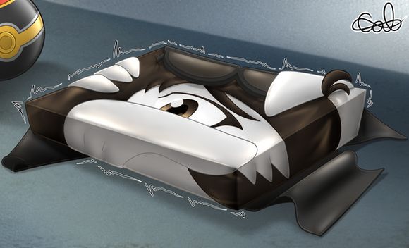 Indeedees are extremely intelligent pokemons, but very much like humans, that also doesn't stop them from being clumsy now and then.This female Indeedee somehow ended up plastered flat, and will now become a rug for the kitchen's floor until she can pop back to normal... tsk tsk.